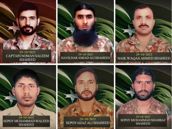 آئی ایس پی آر کے مطابق شہید ہونے والے جوانوں میں خیبرپختونخوا کے ضلع صوابی سے تعلق رکھنے والے 39 سالہ حوالدار امجد علی، راولپنڈی سے تعلق رکھنے والے 36 سالہ نائیک وقاص احمد، سندھ کے ضلع شکار پور سے تعلق رکھنے والے 23 سالہ سپاہی اعجاز علی، ضلع جہلم سے تعلق رکھنے والے 23 سالہ سپاہی محمد ولید اور ضلع خیرپور سے تعلق رکھنے والے 32 سالہ سپاہی محمد شہباز شامل ہیں۔