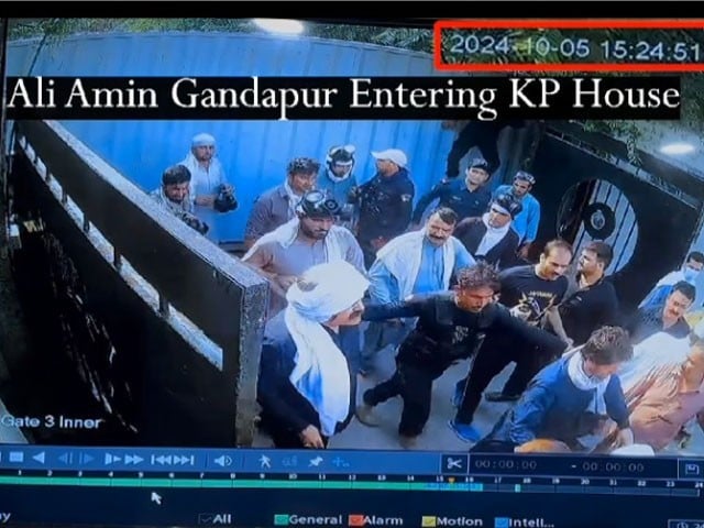 خیبر پختونخواہ ہاؤس اسلام آباد کی خصوصی سی سی ٹی وی فوٹیج میں علی امین گنڈاپور کو خیبر پختونخوا ہاؤس کے گیٹ سے داخل ہوتے ہوئے واضح طور پر دیکھا جا سکتا ہے۔