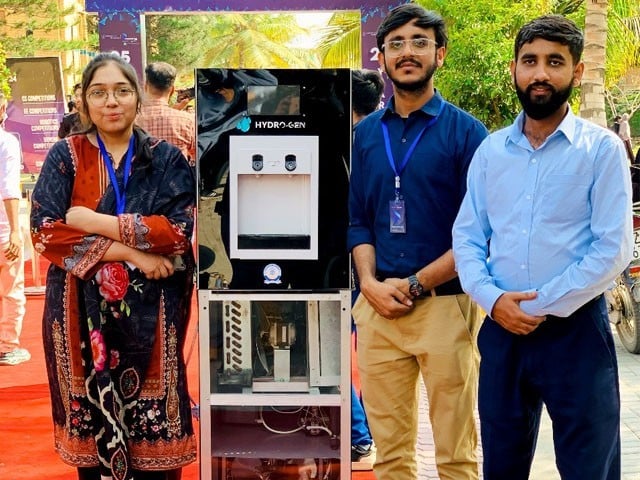 ہوا کی نمی کو پینے کے محفوظ پانی میں تبدیل کرنے والی اس مشین کو ہائیڈروجین کا نام دیا گیا ہے جو بحریہ یونیورسٹی کے شعبہ الیکٹریکل کے طلبہ علی جان، حشام بن تبسم اور سیدہ آمنہ علی نے انجینئر ڈاکٹر اورنگزیب راشد مسعود کی نگرانی میں تیار کی۔